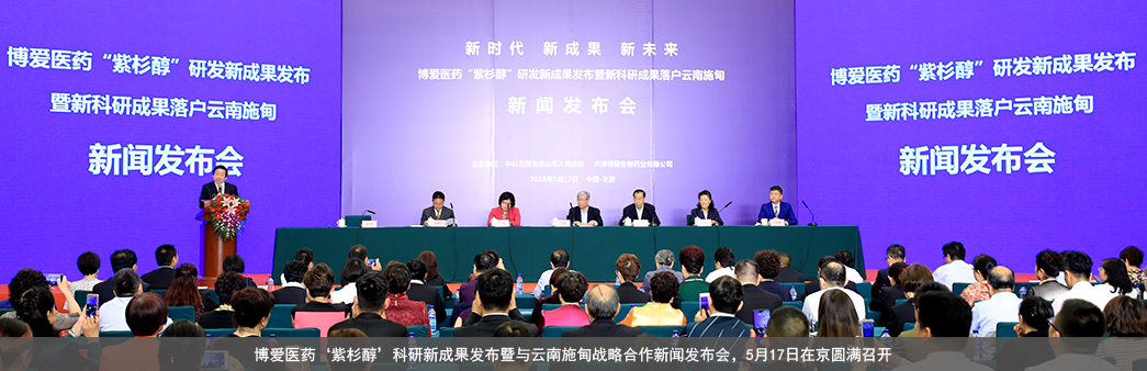 2018年5月17日,在春末夏初的蒙蒙細雨中,北京愈發(fā)呈現(xiàn)出一幅綠意朦朧、生機勃發(fā)之景。在這樣一個萬物競榮的季節(jié)中,在這樣一個清明無限的日子里,天津博愛醫(yī)藥攜凝結了十年心血的研發(fā)成果,在北京全國政協(xié)禮堂召開了“新時代 新成果 新未來——博愛醫(yī)藥‘紫杉醇’科研新成果發(fā)布暨與云南施甸戰(zhàn)略合作新聞發(fā)布會”,為全世界的癌癥患者帶去了健康福音。人類的抗癌史也在這一天開始被改寫!